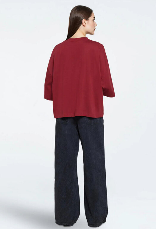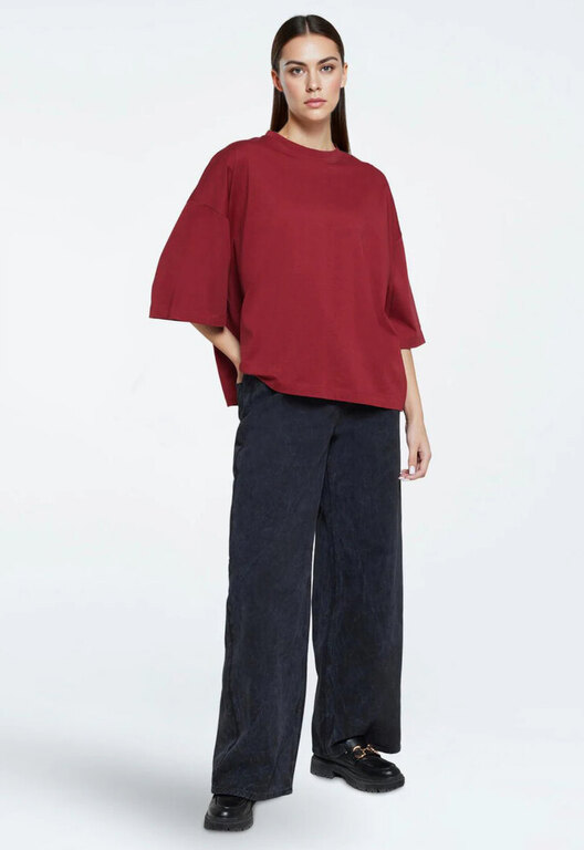 Mira on Minimumin väljä, boksi-mallinen teepaita. Materiaali 100% luomupuuvilla. Mitat-cm: