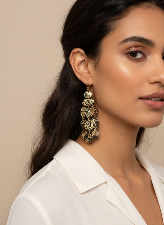 Höperön uniikit polymeerimassa-korvakorut. Metalliosat kirurgin terästä. Korkeus n. 10 cm, leveys n. 4 cm. Valmistettu käsityönä Suomessa.
