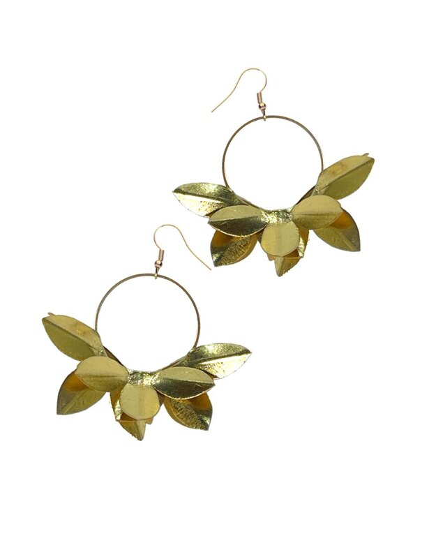 Havinan Marja-Liisa -korvakoruissa sydämen valloittavat pienet, runsaat kukat, jotka on kiinnitetty kullattuu. teräsrenkaaseen. Kukan materiaali paperinahka. Korun korkeus ja leveys noin 3 cm. Valmistettu Suomessa.