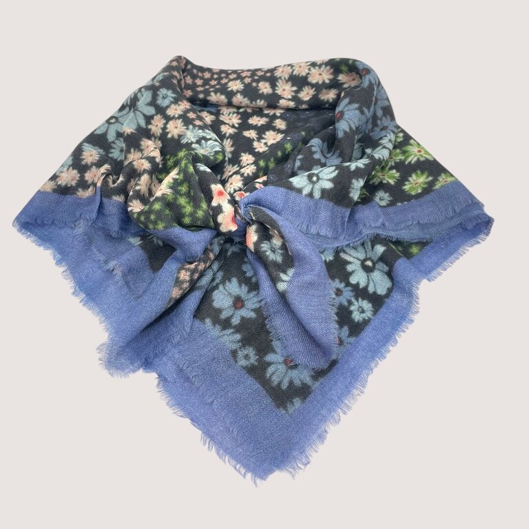 Erfurtin superihana, kevyt villahuivi. Materiaali 20% kasmirvilla 80% hieno mikrovilla, digitaalisesti painettu. Koko 75x80 cm.