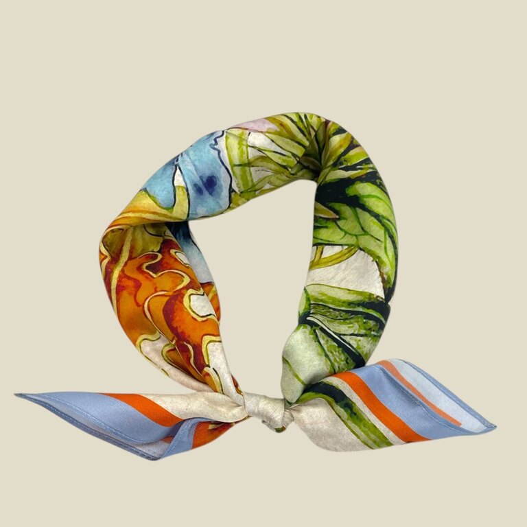 Erfurtin kaunis, pienempi silkkihuivi, materiaali 100% silkki. Koko 55x55 cm.