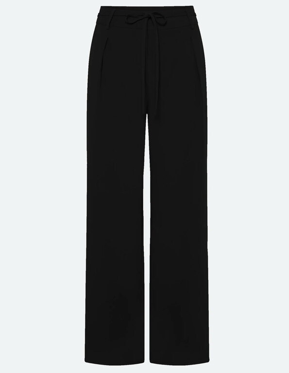 Andriana on pukeva housumalli, joka on valmistettu 78 % polyesteristä, 17 % viskoosista ja 5 % elastaanista – lopputuloksena miellyttävä, kauniisti laskeutuva ja joustava materiaali. Housuissa on rento istuvuus, vyötäröllä solmittava nauha, kaksi etutaskua sekä laskokset edessä.
